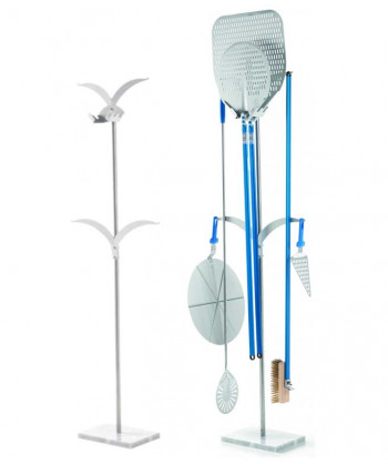 Permette di agganciare i palettini con la testa in basso, con minori rischi di scottature involontarie. Le alette a metà altezza evitano che palettino e spazzola ondeggino quando agganciati ed è possibile utilizzarle per appendere altri due strumenti (es. pala corta, tagliapasta, spatola..). Dimensioni: 25 x 57 x h 183 cm.