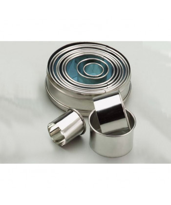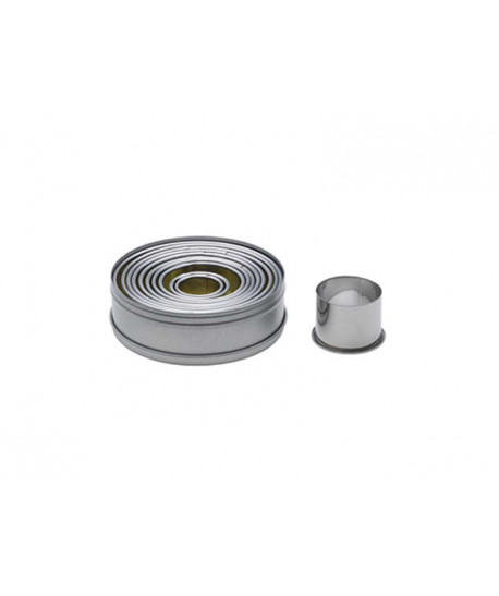 Set di 11 tagliapasta ad anelli lisci di varie dimensioni, da min 22 mm a max 90 mm.