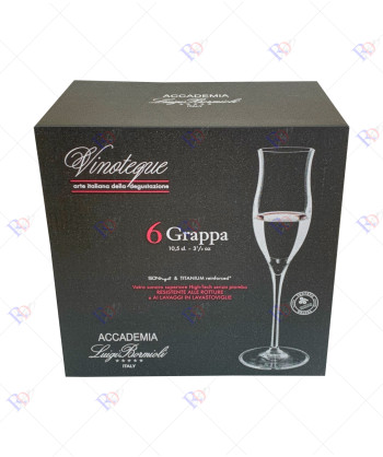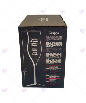 La forma specifica del calice Vinoteque Grappa è studiata per esaltare le proprietà organolettiche della grappa, offrendo un'esperienza sensoriale unica. Questo calice è parte di una collezione dedicata ai veri intenditori, e si abbina perfettamente con altri calici della linea Vinoteque, che potete trovare qui.