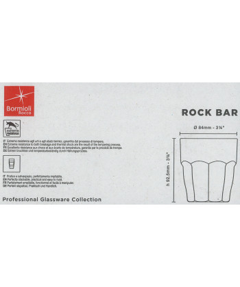 Questo bicchiere fa parte dell' inconfondibile serie Rock Bar, sviluppata appositamente per il mondo Bar con soluzioni perfette per servire ogni tipo di cocktail, long drink e dessert. Come negli altri modelli della collezione Rock Bar, il design strizza l'occhio al passato grazie al decoro che impreziosisce la base del bicchiere, che si allarga sull'ampio bordo. I bicchieri sono lavabili in lavastoviglie, perfettamente impilabili, salva spazio, temperati per garantire la massima praticità e resistenza agli urti e agli shock termici.