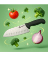 Il Coltello Santoku 18 cm Supra Ambrogio Sanelli è uno strumento professionale di altissima qualità, progettato per garantire precisione, efficienza e comfort in ogni operazione di taglio. Ispirato alla tradizione giapponese, il Santoku è particolarmente indicato per affettare, tritare e sminuzzare carne, pesce e verdure, rendendolo un coltello versatile indispensabile in ogni cucina professionale.