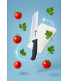 La lama in acciaio inox speciale ad alta resistenza garantisce una lunga durata del filo e ottima tenuta del taglio, anche in condizioni di uso intensivo. Il manico della linea Supra, ergonomico, antiscivolo e resistente a sostanze chimiche e alte temperature, assicura comfort e igiene professionale, ideale per cucine di ristoranti, mense, catering e laboratori alimentari.