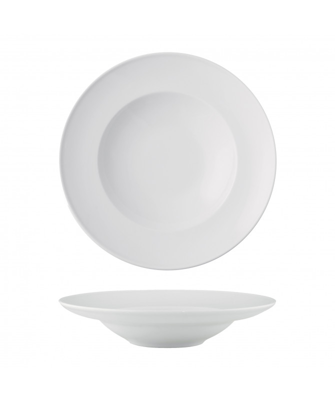 Piatto Gural Delta, importante e robusto questo piatto ha linee classiche con falda medio larga senza nessun decoro, seppure non è decorato la sua forma lo rende comunque un piatto elegante per presentare qualsiasi piatto. Lavabile in Lavastoviglie. Per uso professionale.