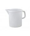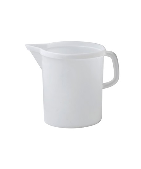 Caraffa in plastica per laboratori. Graduata da massimo 5 litri di capienza.