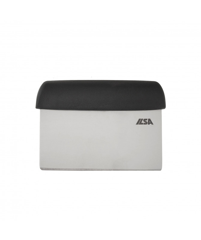 Raschietto rigido in acciaio inox ideale per tagliare, porzionare o raschiare in laboratorio pasticceria, pizzeria e cucina ristorante. Dotato di “maniglia” in polipropilene nero per una comoda presa